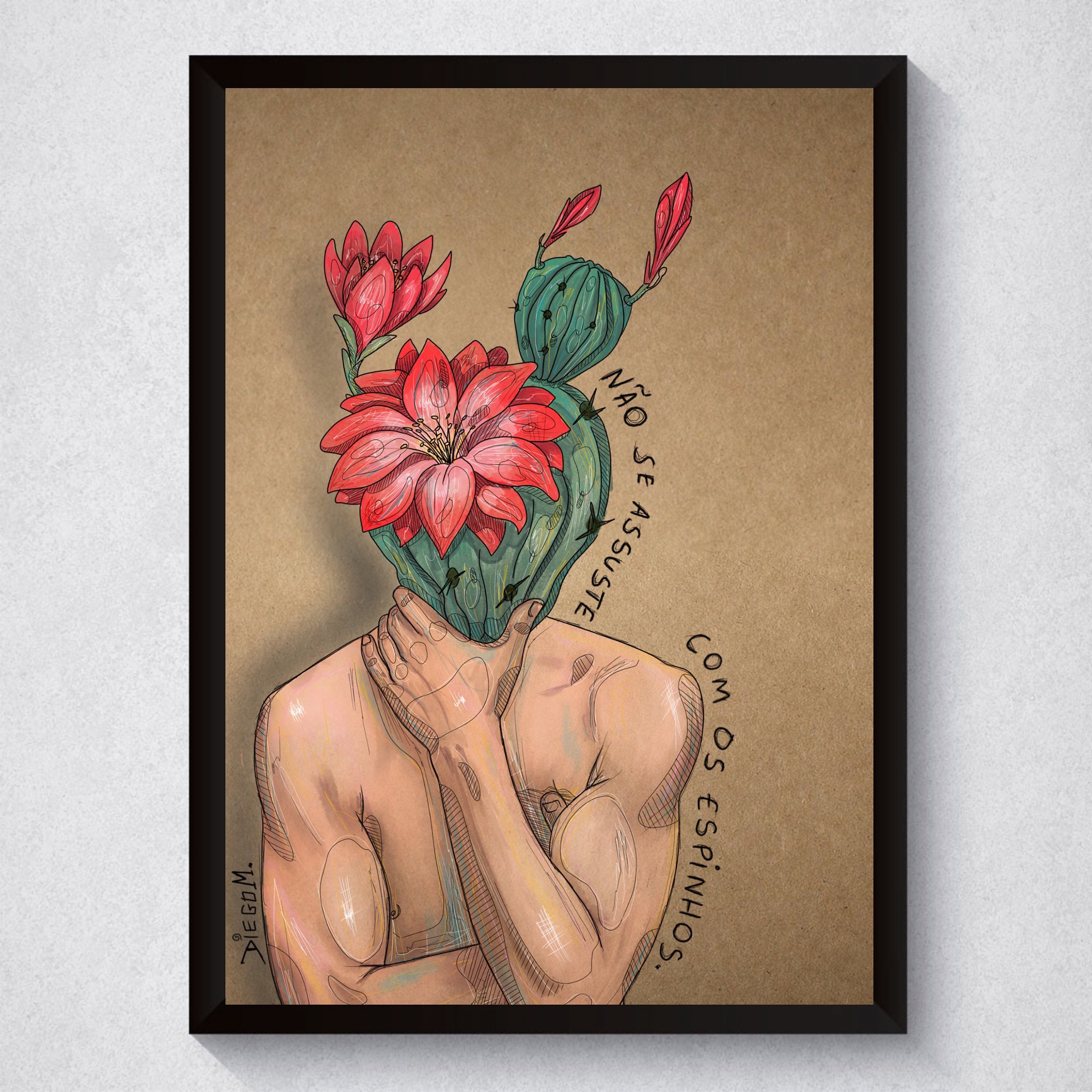 Moldura de madeira laqueada e vidro.
