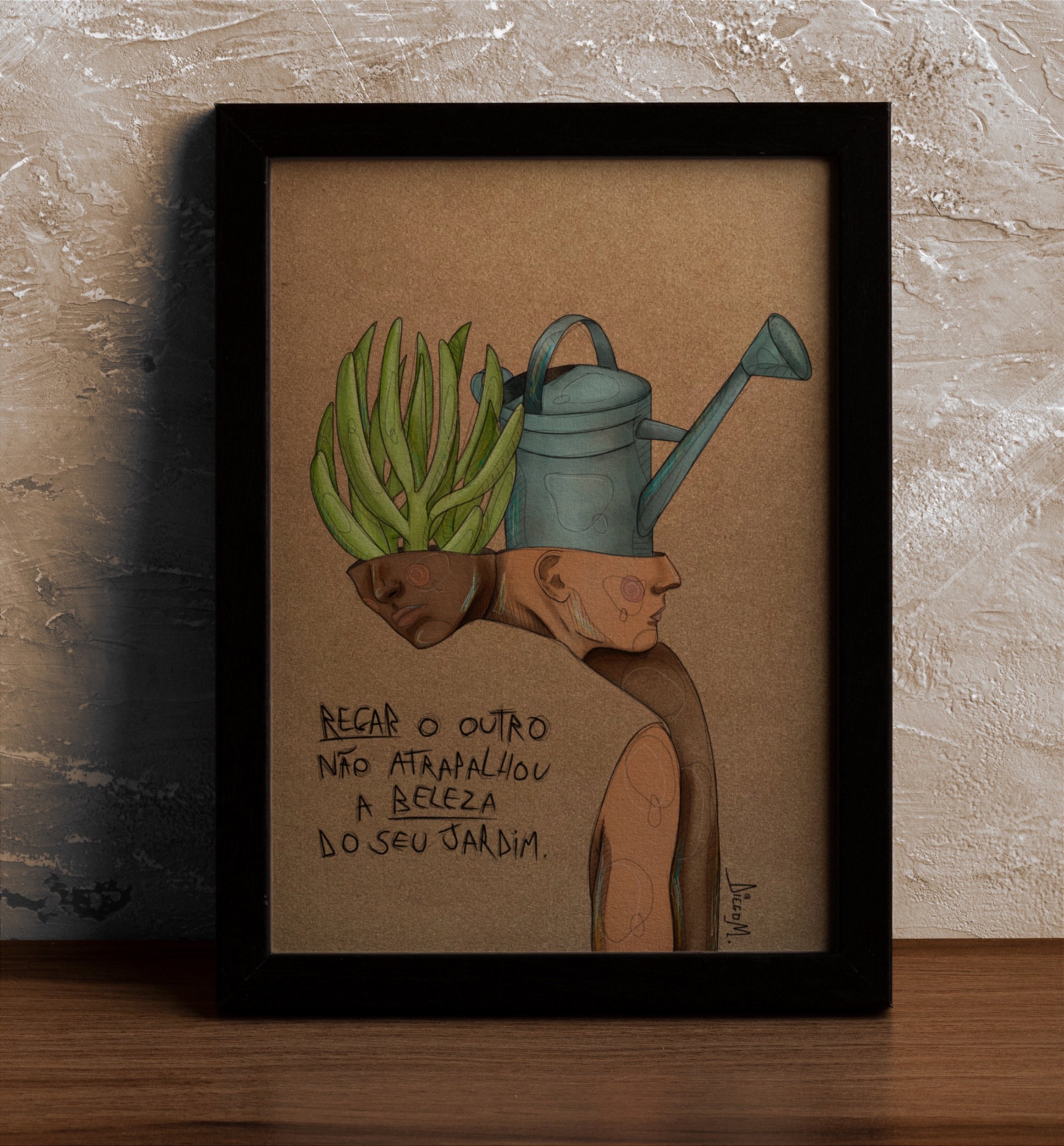 Moldura de madeira laqueada e vidro.